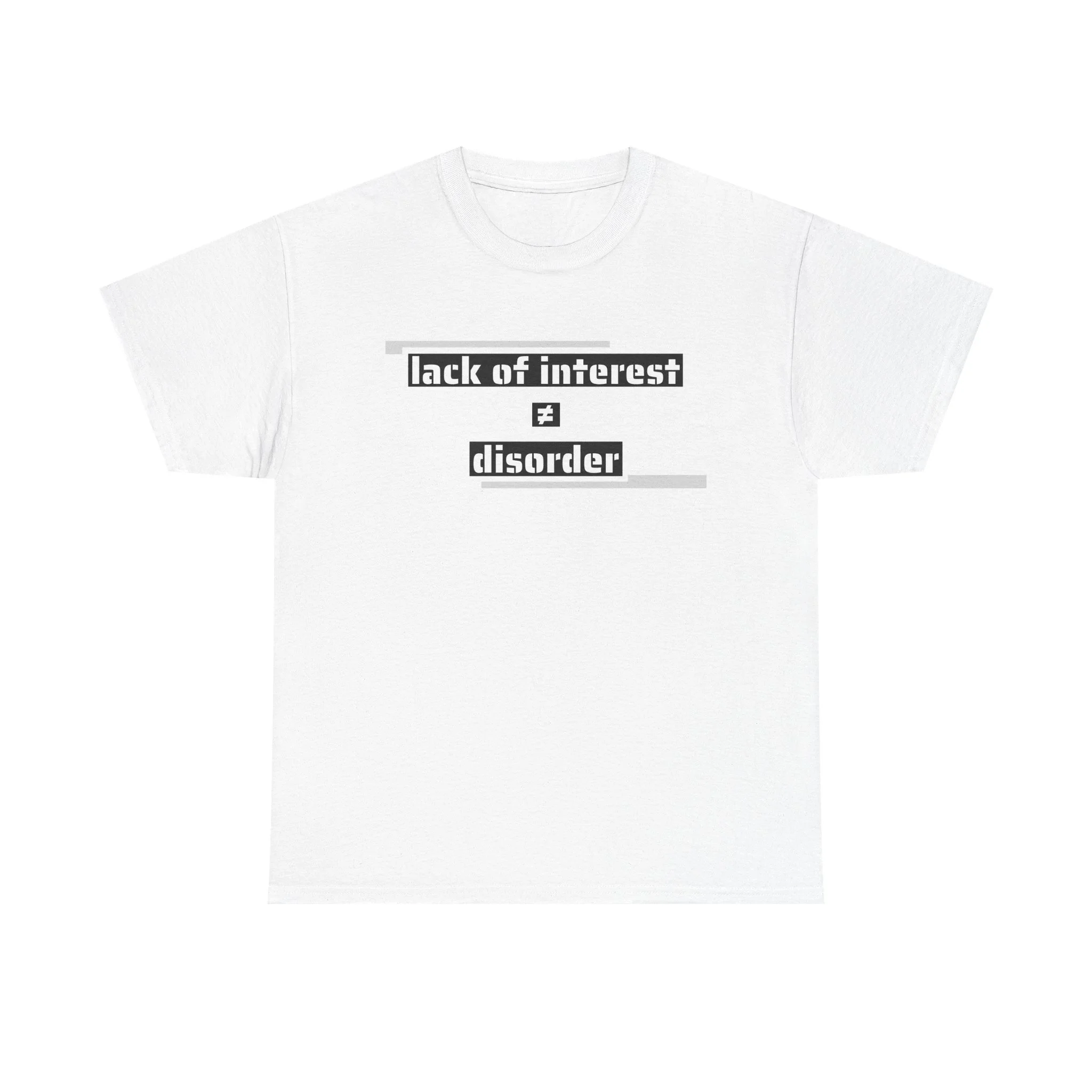 No Interest ≠ Disorder was inspired by an exceptional young lady who was moved to make a statement against the expectations of conformity. Be shy, be different, or be simply uninterested. Just be you.